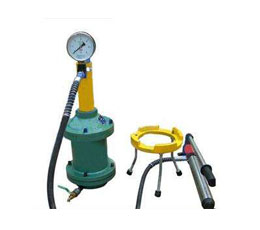 4、取得數(shù)據(jù)后,按逆時針方向擰松回油閥,使系統(tǒng)卸壓,取下上蓋和試料筒,將試料筒安放在脫模器(隨機附件)上,蓋好上蓋,擰緊兩個螺母。在按順時針方向擰緊回油閥,給千斤頂加壓至砼及活塞自動脫落,拆下上蓋和試料筒,擰松回油閥,人工壓回千斤頂活塞,一次試驗結(jié)束。