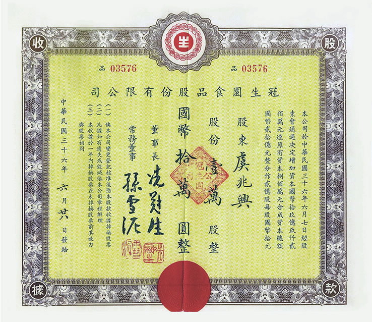 冼冠生傾力經(jīng)營,確立了“揚(yáng)己所長”、“人無我有”、“真工實(shí)料”的經(jīng)營思想。1918年,為適應(yīng)發(fā)展需要,改組為冠生園股份有限公司,公司投資十萬元國幣,開設(shè)了局門路的工廠,擴(kuò)大糖果、餅干的生產(chǎn)。一改本市自產(chǎn)自銷為主的局面,面向外地推廣產(chǎn)品。